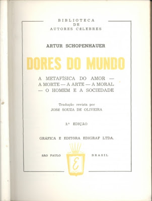 • Em 1931, a carioca Livraria H. Antunes publica Dores do mundo - A metafísica do amor - A morte - A arte - A moral - O homem e a sociedade, sem créditos de tradução, mas provavelmente retomando a tradução lusitana de Albino Forjaz de Sampaio (1913): Capa e página de rosto: